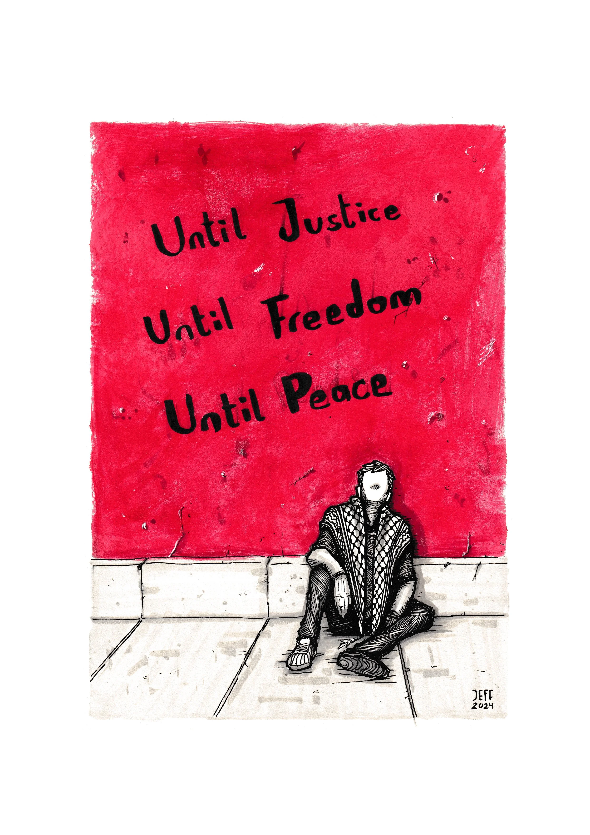 Protest - Ink & Acrylic ink - When will we stop talking about Palestine? when it’s it’s people are free and there is justice and peace.