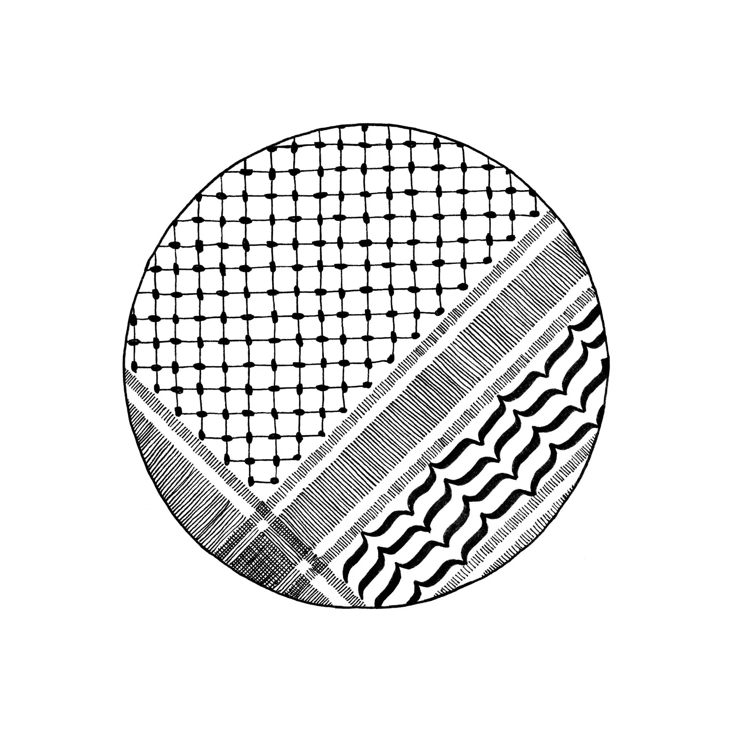 Keffiyeh - Ink - Seeing a lot of products and stickers with the keffiyeh patterns on them I felt like something was always missing. So I tried to digitally create my own and it also felt like something was missing. Drawing it by hand finally felt right. Fabric is organic so we never see the pattern in a perfect state. Even a perfectly woven keffiyeh will over time show signs of wear with loose threads pulled and frayed. The inconsistencies and imperfections in a hand drawn pattern felt to me like the closest to authenticity I can get.
