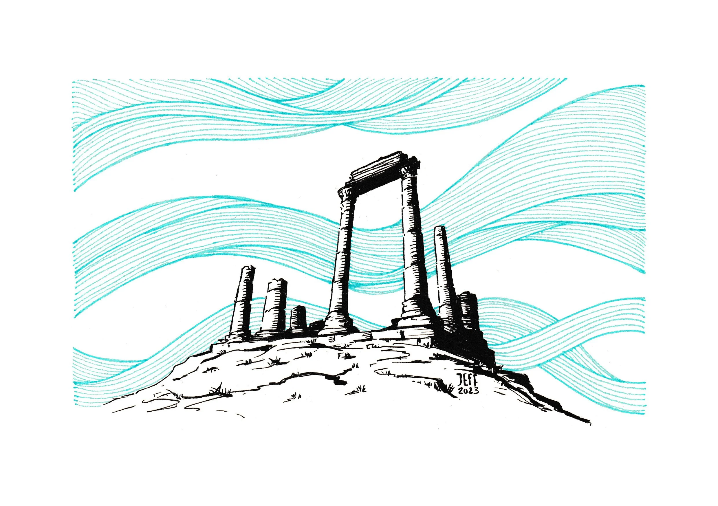 Citadel - Ink - The ruins of a Roman temple in the Amman Citadel in Jordan. A hill in Amman that, because of the strategic location, has several archaeological sites from the different civilizations and cultures that inhabited the region through time.