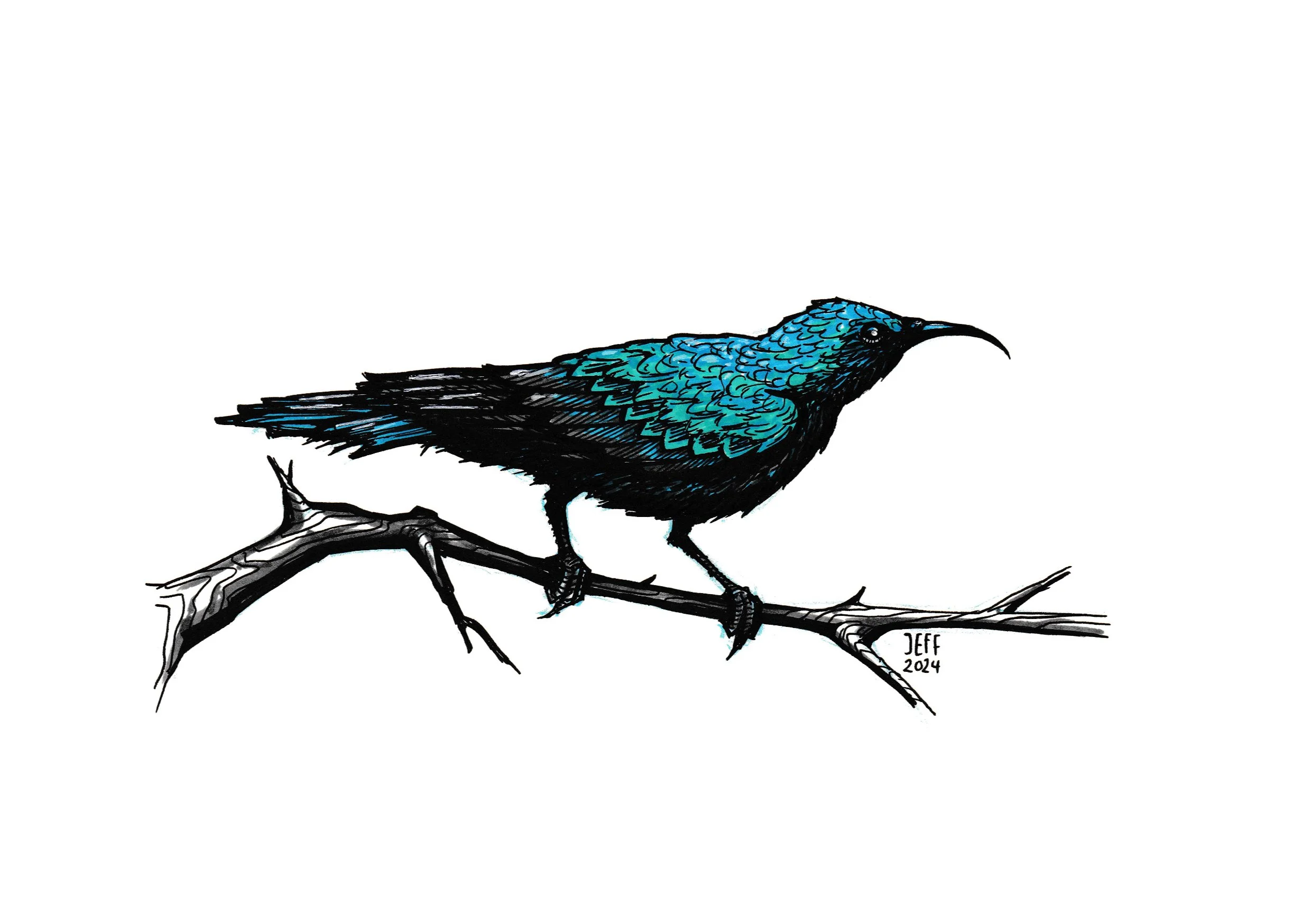 Sunbird - Ink & Markers - I wanted to draw a sunbird, and while looking into reference photos and reading about the bird, I learned about the Palestine Sunbird and went for it.