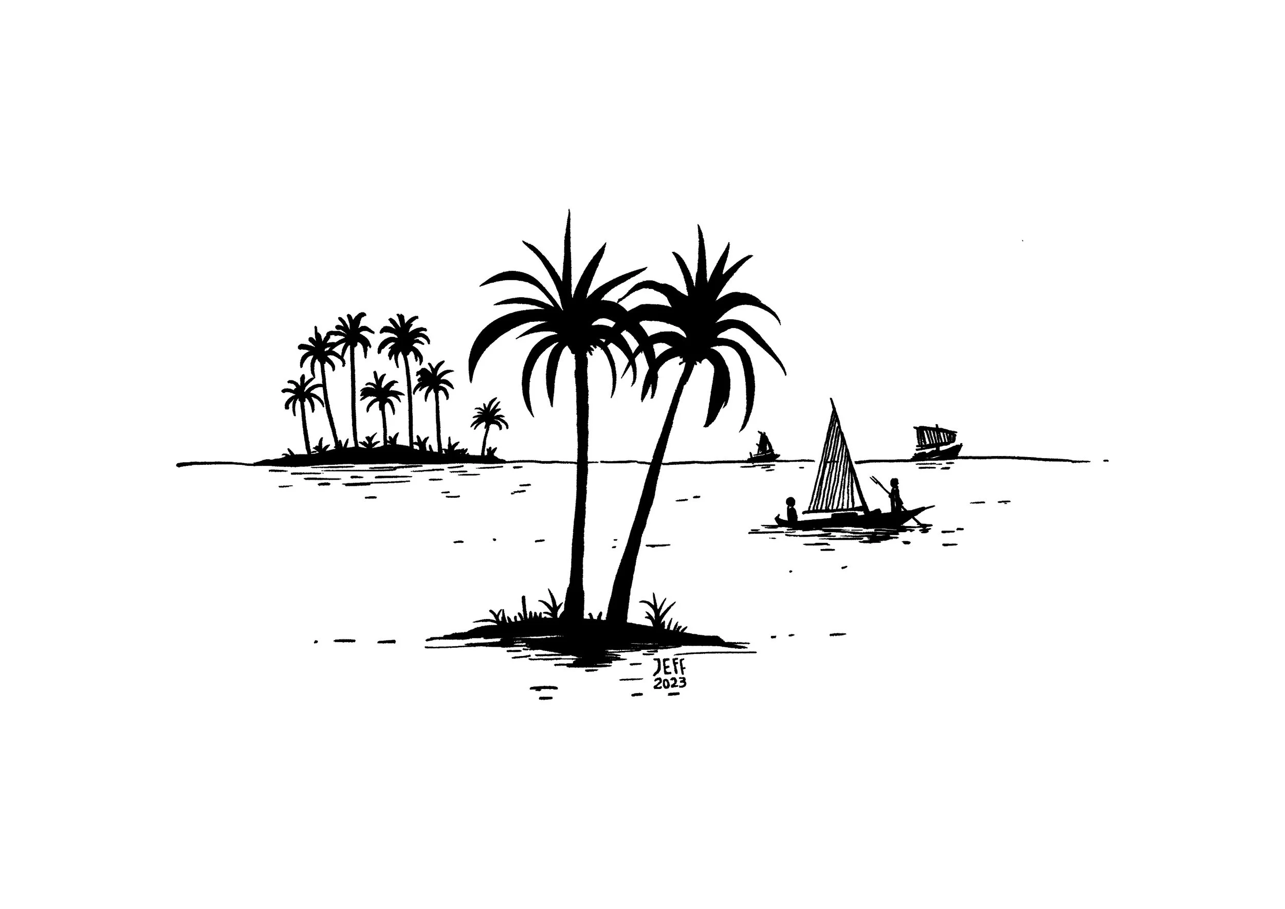 Caravan - Ink - I usually steer clear of stereotypes, but a camel caravan every once in a while is still fun to draw.