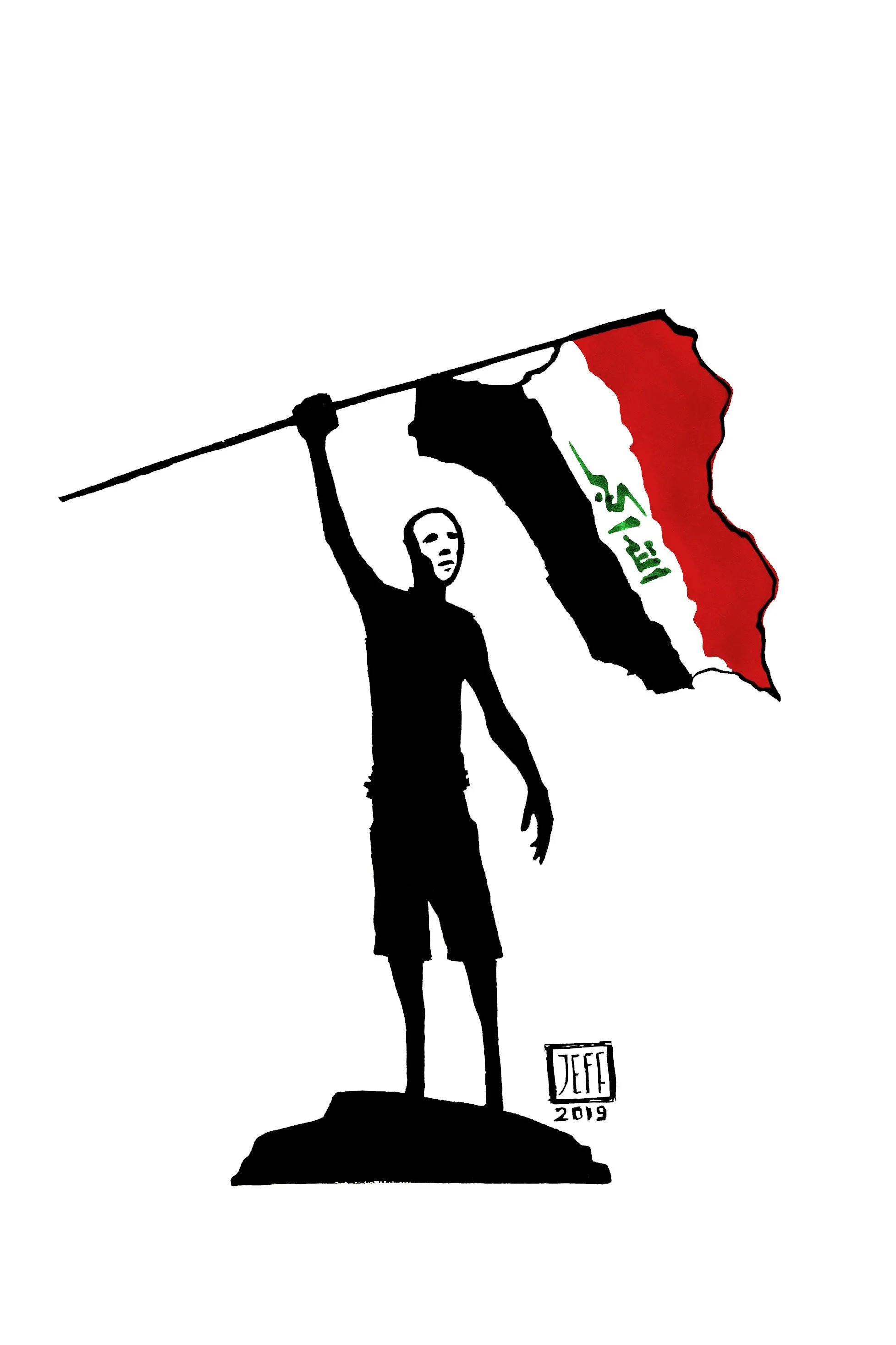 Defiance - Ink & markers - Inspired by the mass protests in Iraq in 2019, I felt the need to express some kind of support. I remembered a photo of a childhood friend waving the flag at a football game which I used as reference for the pose.